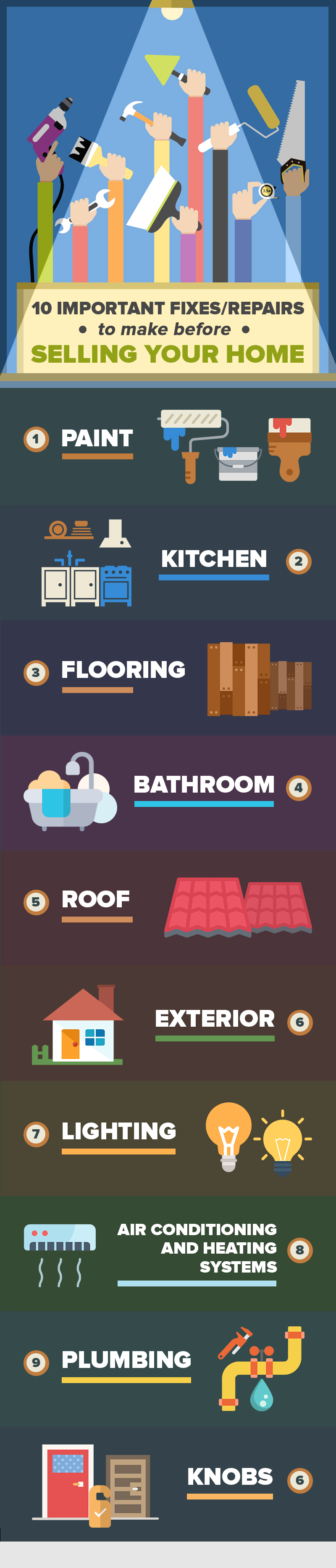 10 . Knobs – They may seem trivial but buyers could be critical of everything. If something as basic as a door knob is not working, buyers might think that the more important parts of the house are not working too.